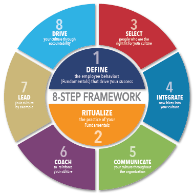 At High Performing Culture, we’ve shone a bright spotlight on the process for companies to be more intentional and systematic about creating and institutionalizing the culture they want to drive their success. The 8-Step framework of our Fundamentals System™ provides the foundation for the design, implementation and continued practice of a higher performing culture. It organizes the steps into a simple roadmap you can follow on your way to becoming a healthy organization. In previous posts we’ve talked about some of the individual elements in the roadmap, and while each is independently valuable, it’s the integration of all the pieces that makes the approach so successful.
