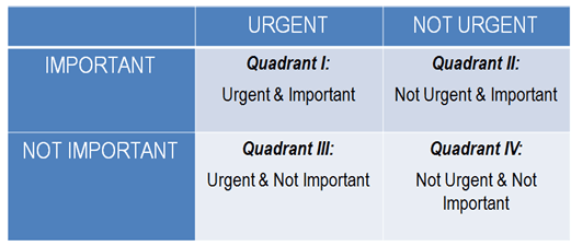 In attempting to identify one of these Fundamentals, a member of the company\’s senior management team provided the following description, “I want our people to always focus on the most important tasks and not get caught up in things that are urgent but not necessarily important.” His description immediately brought to mind Steven Covey\’s Time Management Matrix. In his book, The Seven Habit of Highly Successful People, Covey suggests the use of a four quadrant system (Time Management Matrix) to prioritize tasks. The four quadrants are: